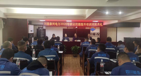 2020年11月14日上午9点,川能叙州电力2020年职业技能提升培训班在宜宾市叙州区柏溪花园四川能投公司5楼会议室隆重开班了。本次培训班由叙州区人社局牵头,宜宾职业技术学院汽车与轨道交通学院承办,得到了四川能投集团各级领导的高度重视和大力支持,会议由能投集团邓琳亿部长主持。