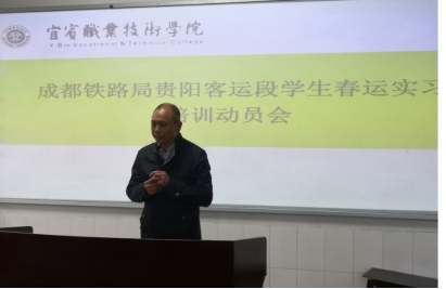 2022年春运即将开启之际,宜宾职业技术学院278名2022届准毕业生赴成都铁路局贵阳客运段春运实习培训动员会于12月17日下午在A1区教学楼1318教室召开,此次动员会由汽车与轨道交通学院院长梅容芳同志主持会议,招就处、教务处、保卫处、智造学院、电智学院、经管学院、建环学院、交通学院相关领导、春运实习培训带队老师出席。