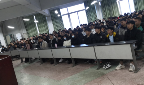 教务处田泽明科长就外出实习作工作讲话,向同学们讲解我院实践教学管理办法并提出应遵守的实习要求。