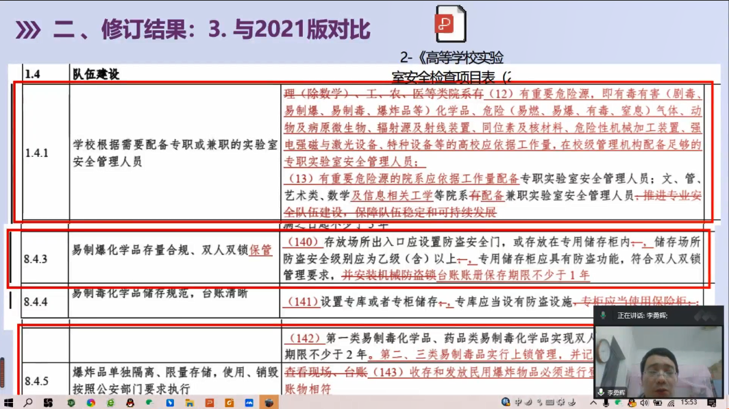 随后,李勇辉老师以“实验室安全”为主题,围绕实验室安全检查条目、实验室危化品管理、高校实验室安全事故案例等,详细解读了高等学校实验室安全检查项目表的303条目。他介绍了实验室常用危化品及标识,提高危化品使用时的安全防护知识,展示了典型实验室安全事故警示案例,突出实验室安全管理工作“万无一失、一失万无”。