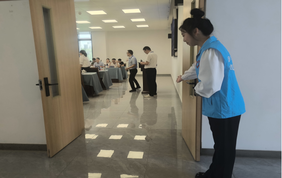 在产教融合会议期间,志愿者们充分展现学院志愿者的良好风貌,成为一道亮丽风景线。他们活跃在楼道与会议入口处微笑迎候,主动为参会人员指引方向,提供贴心咨询服务。他们以热情的态度、专业的服务,保障活动有序开展,用行动诠释志愿精神,尽显青春担当,为活动顺利推进筑牢基础。