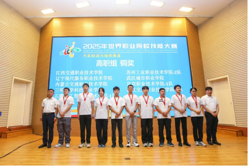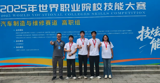 2025年8月28日至30日,2025年世界职业院校技能大赛总决赛争夺赛“汽车制造与维修”赛道(高职组)在长春汽车职业技术大学和吉林交通职业技术学院成功举办。由我校刘良、李元正老师指导,吴宏、沈顺林、李智明、刘冉四位同学组成的参赛队,凭借扎实的专业技能、创新的设计思路和稳定的现场表现,最终荣获该赛道铜奖。