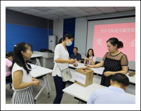 会上,高书记组织大家学习了《汽车与轨道交通学院党总支委员选举办法》,介绍本次党总支委员候选人基本情况,强调工作纪律。大会按照规定程序,通过无记名投票方式选举出了3名总支委员,并在会后召开党总支会议对3名委员分工进行了明确:宫涛同志任党总支组织委员、颜玉玲同志任党总支纪检委员、刘福华同志任党总支宣传统战委员。大会应到党员19人,实到党员18人(其中1人为预备党员),1人到企业锻炼请假。