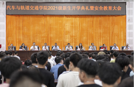 青春逢盛世,奋进谱华章。在美丽的金沙江畔,在秋意盎然的金秋时节,在举国上下庆祝中国共产党成立100周年之际,9月16日中午,汽车与轨道交通学院在B区活动中心举行了2021级新同学的开学典礼暨安全教育大会。宜宾职业技术学院党委常委、副院长古文伟出席了典礼,交通学院全体干部、教师代表及全体新生出席庆典。