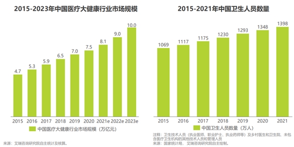 一方面,新冠疫情促使更多人关注和追求生理及心理健康,使得医疗大健康行业市场规模逐年上升;另一方面,老龄化时代让医疗人员、护工、健康管理等职业日益成为社会中不可或缺的角色,中国卫生人员的数量近年持续上涨。医疗照护行业的巨大潜力将推动职业教育市场未来在该领域的持续探索及开拓。