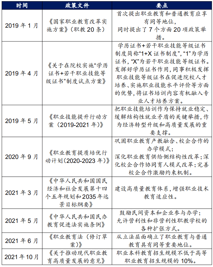 职业教育近几年开始逐渐受到重视,国家政策持续释放利好信号: