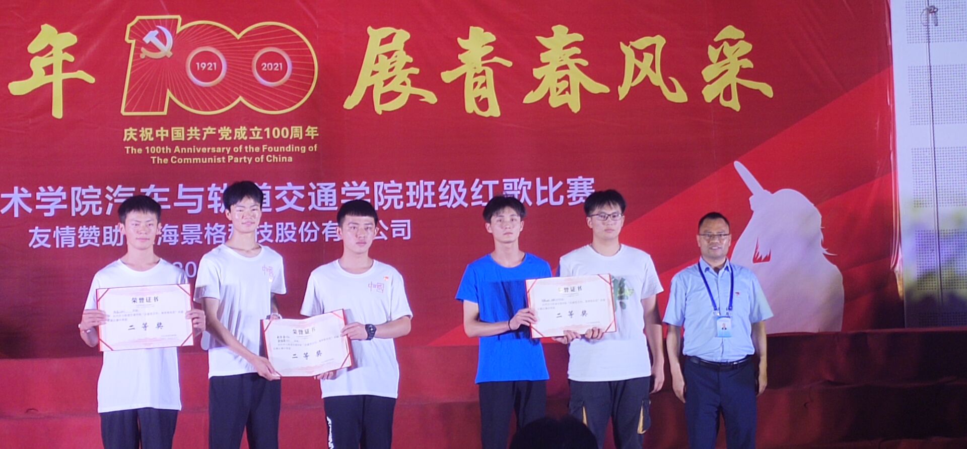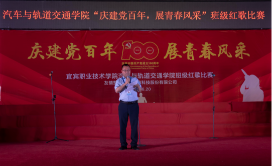 百年征程波澜壮阔,百年初心历久弥坚。中国共产党从1921年到2021年已经昂首阔步地走过了100年,历史如歌,党的历史是一首赞歌,团结带领人民从胜利走向胜利;党的历史是一部红歌,凝聚着中国共产党生生不息的力量,以一种不朽的文化和特殊的音符见证了党的百年历史。在中国共产党百年华诞之际,6月20日晚,汽车与轨道交通学院以“庆建党百年 展青春风采”为主题举办红歌大赛,在学院B区活动中心唱响红歌,献礼百年。汽车与轨道交通学院院长梅容芳、党总支书记高永贵、副院长刘福华、党总支副书记覃登攀以及全体干部、师生参加了本次活动。