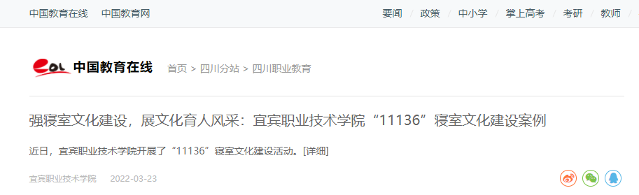 强寝室文化建设,展文化育人风采:宜宾职业技术学院“11136”寝室文化建设案例